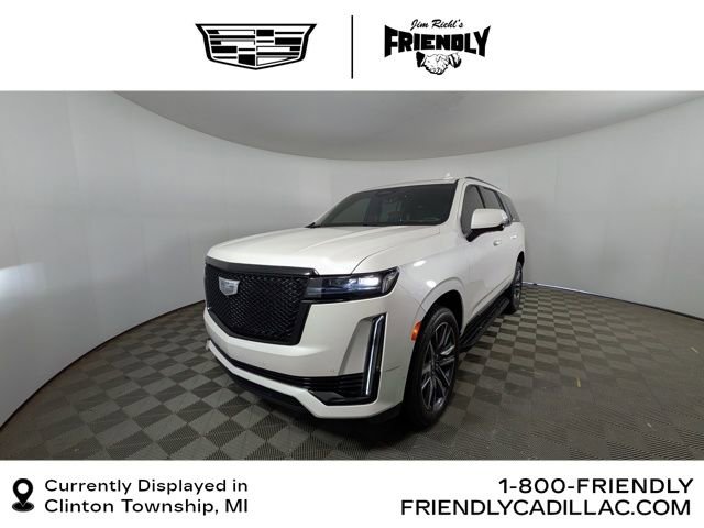 Looking for a great deal on a pre-owned vehicle? Jim Riehl's Friendly Automotive Group has a wide selection of quality used cars, trucks, and SUVs to meet your needs and budget. Whether you're in the market for a reliable sedan, a versatile SUV, or a rugged pickup truck, we have something for everyone! All of our used vehicles are thoroughly inspected by our expert technicians to ensure they meet our high standards for performance and safety. With a variety of makes and models available, youâre sure to find the perfect vehicle that fits your lifestyle.2021 Cadillac Escalade Crystal White Tricoat 6.2L V8 4WD 10-Speed Automatic with OverdriveClean CARFAX. Odometer is 5680 miles below market average! 14/19 City/Highway MPG 4WD, Black Leather.Our experienced sales staff is eager to share their knowledge and enthusiasm with you. Come in today for a free test-drive!We encourage you to browse our online inventory, schedule a test drive, investigate financing options, or get your trade appraised. You can also request more information about a vehicle using our online Contact Us form or by calling us. At Jim Riehlâs Friendly Automotive we have taken every measure to ensure that our dealerships offer the very best new and used car buying experience. With so much to offer it's no wonder so many Detroit Michigan residents have relied on Jim Riehl's Friendly Auto Group for all of their automotive needs.Check out all the standard equipment Preferred Equipment Group 1SC (Air Ionizer, AKG Studio 19-Speaker Audio System, Automatic Emergency Braking, Body-Color Door Handles, Door Lock & Latch Shields, Electronic Cruise Control w/Set & Resume Speed, Electronic Limited-Slip Differential, Enhanced Automatic Parking Assist, Glass Breakage Sensor, Hitch Guidance w/Hitch View, In-Vehicle Trailering System App, Integrated Trailer Brake Controller, Lane Keep Assist w/Lane Departure Warning, Power Panoramic Tilt-Sliding Sunroof, Rear Camera Mirror, Rear Camera Mirror Washer, Rear Cross Traffic Alert, Reconfigurable Full-Color Head-Up Display, Running Board Assist Steps, Theft-Deterrent Alarm System, Trailer Side Blind Zone Alert, Vehicle Inclination Sensor, and Vehicle Interior Movement Sensor), 4WD, Black Leather, 16.9 Diagonal OLED Infotainment Screen, 19 Speakers, 2-Presets Memory For Driver Seat Adjuster, 3.23 Axle Ratio, 3rd row seats: split-bench, 4-Way Power Driver Lumbar Seat Adjuster, 4-Way Power Front Passenger Lumbar Seat Adjuster, 4-Wheel Disc Brakes, 8-Way Power Driver Seat Adjuster, 8-Way Power Front Passenger Seat Adjuster, ABS brakes, Adaptive suspension, Air Conditioning, Alloy wheels, AM/FM radio: SiriusXM with 360L, Apple CarPlay/Android Auto, Audio memory, Auto High-beam Headlights, Auto tilt-away steering wheel, Auto-dimming door mirrors, Auto-dimming Rear-View mirror, Automatic temperature control, Brake assist, Bumpers: body-color, Compass, Delay-off headlights, Driver door bin, Driver vanity mirror, Dual front impact airbags, Dual front side impact airbags, Electronic Stability Control, Emergency communication system: OnStar and Cadillac connected services capable, Four wheel independent suspension, Front anti-roll bar, Front Bucket Seats, Front Center Armrest w/Storage, Front dual zone A/C, Front reading lights, Fully automatic headlights, Garage door transmitter, Gloss Black Escalade Nameplate (LPO), HD Radio, Heads-Up Display, Heated & Ventilated Driver & Front Passenger Seats, Heated door mirrors, Heated Driver & Front Passenger Seats, Heated front seats, Heated rear seats, Heated steering wheel, Illuminated entry, Leather Seating Surfaces w/Precision Perf Inserts, Leather steering wheel, Low tire pressure warning, Magnetic Ride Control Suspension, Memory seat, Monochrome Cadillac Emblems (LPO), Navigation System, Occupant sensing airbag, Outside temperature display, Overhead airbag, Overhead console, Panic alarm, Passenger door bin, Passenger vanity mirror, Power door mirrors, Power dr