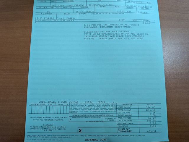- Odometer readings