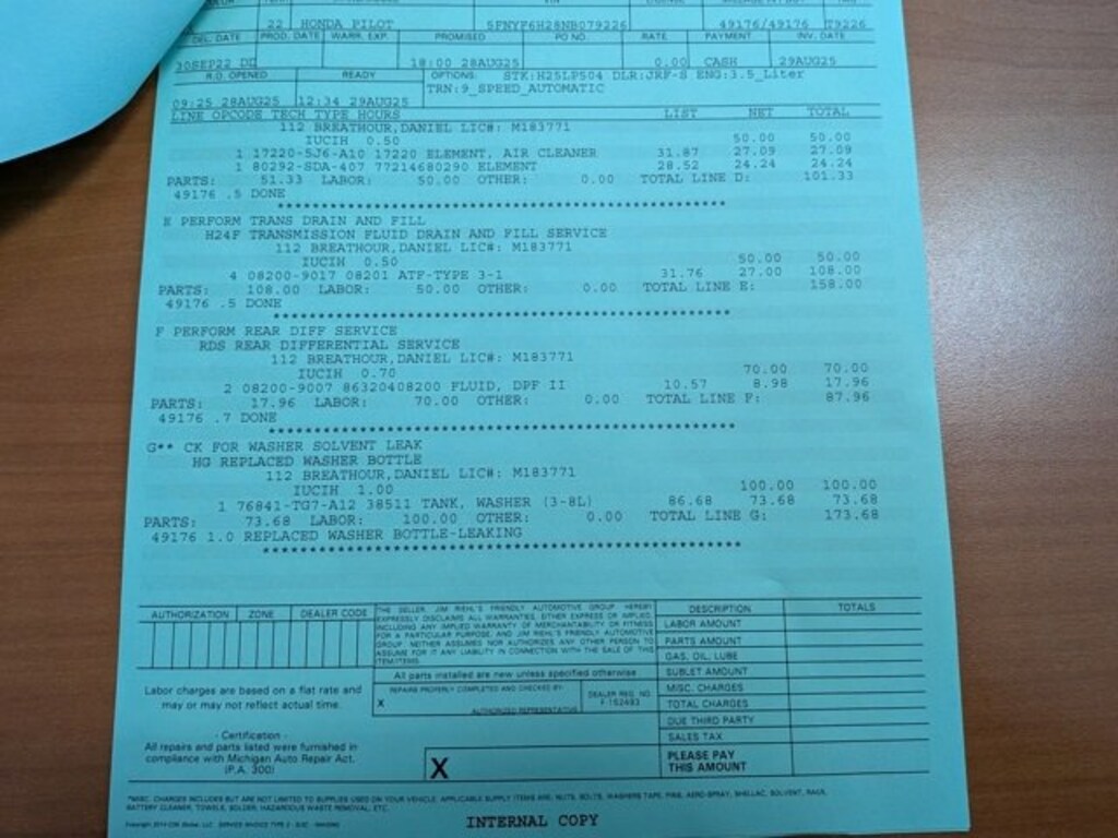 Check out all the standard equipment AWD, 3rd row seats: split-bench, 4-Wheel Disc Brakes, 4.33 Axle Ratio, 7 Speakers, A/V remote: CabinControl, ABS brakes, Air Conditioning, Alloy wheels, AM/FM radio: SiriusXM, Apple CarPlay/Android Auto, Auto High-beam Headlights, Auto-dimming Rear-View mirror, Automatic temperature control, Blind Spot Information (BSI) System warning, Brake assist, Bumpers: body-color, Delay-off headlights, Driver door bin, Driver vanity mirror, Dual front impact airbags, Dual front side impact airbags, Electronic Stability Control, Emergency communication system: HondaLink Assist, Exterior Parking Camera Rear, Forward collision: Collision Mitigation Braking System (CMBS) + FCW mitigation, Four wheel independent suspension, Front anti-roll bar, Front Bucket Seats, Front Center Armrest, Front dual zone A/C, Front fog lights, Front reading lights, Fully automatic headlights, Garage door transmitter: HomeLink, Heated door mirrors, Heated Front Bucket Seats, Heated front seats, Illuminated entry, Lane departure: Lane Keeping Assist System (LKAS) active, Leather Seat Trim, Low tire pressure warning, Memory seat, Occupant sensing airbag, Outside temperature display, Overhead airbag, Overhead console, Panic alarm, Passenger door bin, Passenger vanity mirror, Power door mirrors, Power driver seat, Power Liftgate, Power moonroof, Power passenger seat, Power steering, Power windows, Radio data system, Radio: 215-Watt Audio System, Rear air conditioning, Rear anti-roll bar, Rear reading lights, Rear seat center armrest, Rear window defroster, Rear window wiper, Reclining 3rd row seat, Remote keyless entry, Roof rack: rails only, Security system, Speed control, Speed-sensing steering, Speed-Sensitive Wipers, Split folding rear seat, Spoiler, Steering wheel mounted audio controls, Tachometer, Telescoping steering wheel, Tilt steering wheel, Traction control, Trip computer, Turn signal indicator mirrors, Variably intermittent wipers, and Wheels: 20 Exclusive Gloss Black Alloy.