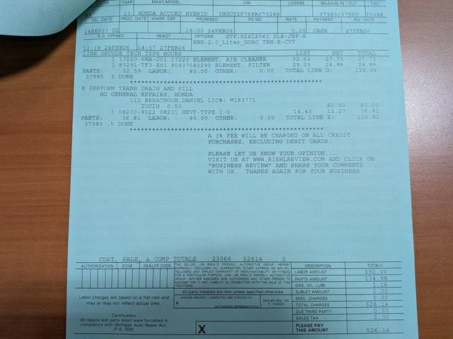 2023 Honda Accord Hybrid Platinum White Pearl 2.0L 16V DOHC FWD eCVT