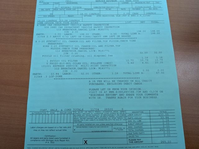 Looking for a great deal on a pre-owned vehicle? Jim Riehl's Friendly Automotive Group has a wide selection of quality used cars, trucks, and SUVs to meet your needs and budget. Whether you're in the market for a reliable sedan, a versatile SUV, or a rugged pickup truck, we have something for everyone! All of our used vehicles are thoroughly inspected by our expert technicians to ensure they meet our high standards for performance and safety. With a variety of makes and models available, youâre sure to find the perfect vehicle that fits your lifestyle.2024 Hyundai Tucson Black Pearl 2.5L I4 DGI DOHC 16V LEV3-SULEV30 187hp AWD 8-Speed Automatic with SHIFTRONICClean CARFAX. CARFAX One-Owner. Odometer is 9221 miles below market average! 23/29 City/Highway MPG AWD.Our experienced sales staff is eager to share their knowledge and enthusiasm with you. Come in today for a free test-drive!We encourage you to browse our online inventory, schedule a test drive, investigate financing options, or get your trade appraised. You can also request more information about a vehicle using our online Contact Us form or by calling us. At Jim Riehlâs Friendly Automotive we have taken every measure to ensure that our dealerships offer the very best new and used car buying experience. With so much to offer it's no wonder so many Detroit Michigan residents have relied on Jim Riehl's Friendly Auto Group for all of their automotive needs.Check out all the standard equipment Option Group 01, AWD, 3.648 Axle Ratio, 4-Wheel Disc Brakes, 8 Speakers, ABS brakes, Air Conditioning, Alloy wheels, AM/FM radio: SiriusXM, Apple CarPlay & Android Auto, Auto High-beam Headlights, Auto-dimming Rear-View mirror, Automatic temperature control, Brake assist, Bumpers: body-color, Cargo Net, Cargo Tray, Carpeted Floor Mats, Delay-off headlights, Driver door bin, Driver vanity mirror, Dual front impact airbags, Dual front side impact airbags, Electronic Stability Control, Emergency communication system: Blue Link Connected Car Service (3-year complimentary subscription), Exterior Parking Camera Rear, First Aid Kit, Four wheel independent suspension, Front anti-roll bar, Front Bucket Seats, Front Center Armrest, Front dual zone A/C, Front reading lights, Fully automatic headlights, Garage door transmitter: HomeLink, Heated & Ventilated Front Bucket Seats, Heated door mirrors, Heated front seats, Heated rear seats, Heated steering wheel, Illuminated entry, Leather Seat Trim, Low tire pressure warning, Memory seat, Navigation System, Occupant sensing airbag, Outside temperature display, Overhead airbag, Overhead console, Panic alarm, Passenger door bin, Passenger vanity mirror, Power door mirrors, Power driver seat, Power Liftgate, Power moonroof, Power passenger seat, Power steering, Power windows, Radio data system, Radio: Bose Premium w/AM/FM/HD Audio System, Rain sensing wipers, Rear anti-roll bar, Rear Bumper Applique, Rear reading lights, Rear seat center armrest, Rear side impact airbag, Rear window defroster, Rear window wiper, Remote keyless entry, Roadside Assistance Kit, Roof Rack Cross Rails, Roof rack: rails only, Security system, Speed control, Split folding rear seat, Spoiler, Steering wheel mounted audio controls, Tachometer, Telescoping steering wheel, Tilt steering wheel, Traction control, Trip computer, Turn signal indicator mirrors, Variably intermittent wipers, Ventilated front seats, and Wheels: 19 x 7.5J Machine-Face Finish Alloy.