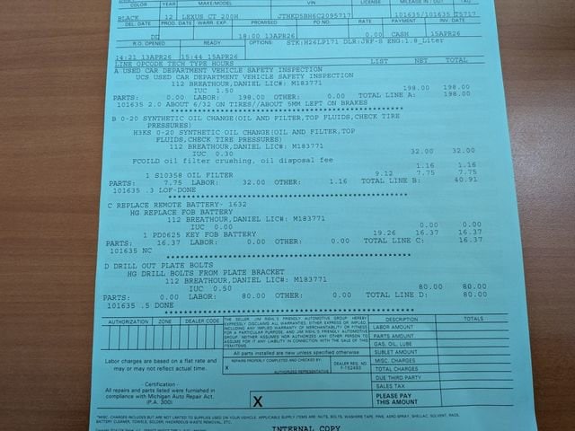 2012 Lexus CT Obsidian 1.8L 4-Cylinder DOHC 16V VVT-i FWD Continuously Variable (ECVT)